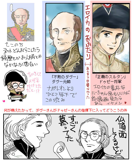 ・・等と妄想☆(^m^) これはやおいじゃないざますよ。 萌えがそこかしこにぶら下ってて困ります(^0^)ほほほ 歴史上の人ってニックネームとかキャッチフレーズついててカッコイイですね。 そういえばTV番組プロジェクトXに出てた方もニックネームついてましたっけ (○○のライオン)とか(○○の【苗字】)とか。 描いて気が済んだので 今度こそ白黒フェアに戻ろうと思います。 |