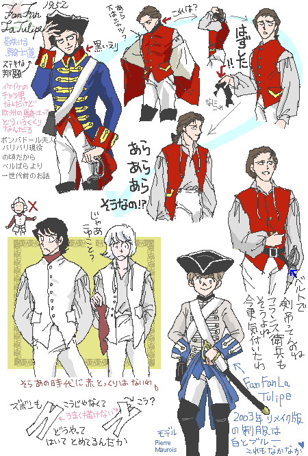 画像で「この人かっこいいー!」と思ったら大概この方です。 話が飛びますが前々から衛兵の制服の上着脱いだら 下は赤いとっくりだと勝手に思い込んで描いてましたが(襟が赤いとっくりみたいだから・・) どうも変だな~とは思っていたのです。 で、ジェラール・フィリップの映画見てたら 衛兵隊のに似た感じの制服着てて 段々と脱いでくれるではありませんか! |